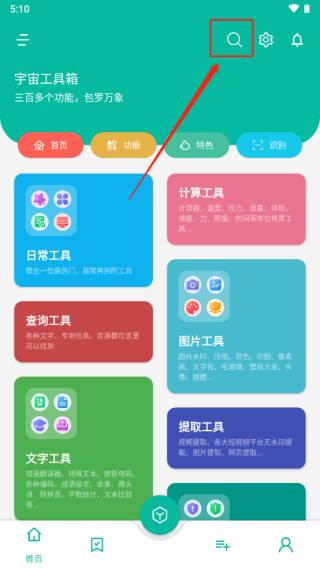 1、从下载派站安装宇宙工具箱,打开进入软件首页,超300种功能,日常、计算、查询、图片、提取、文字、开发、系统等工具应有尽有,可任意选择,更有在线游戏以供休闲娱乐