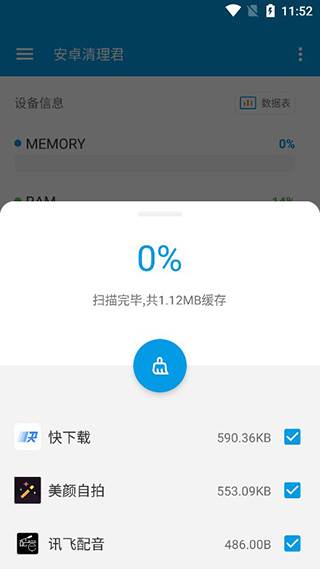 5、如下图所示,成功清理了全部的应用缓存让你的手机运行更加流畅。