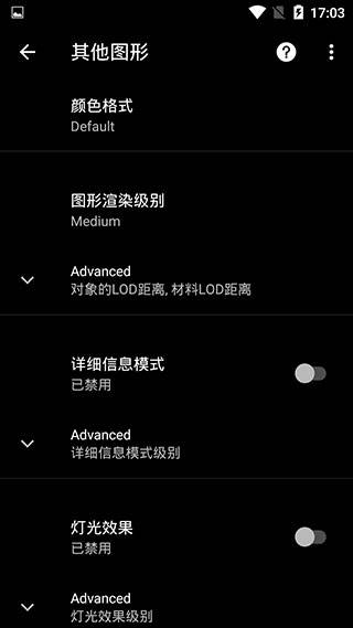 2、细节模式:使用不同的配置文件更改图形的细节。