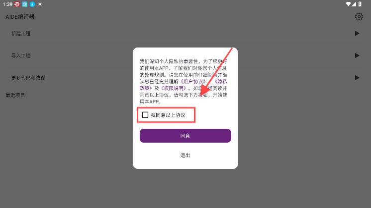 1、先将aide编译器下载到手机上并打开