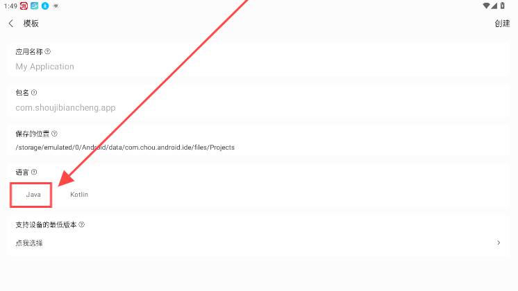 2、然后在这模板设置中将语言设置为java即可