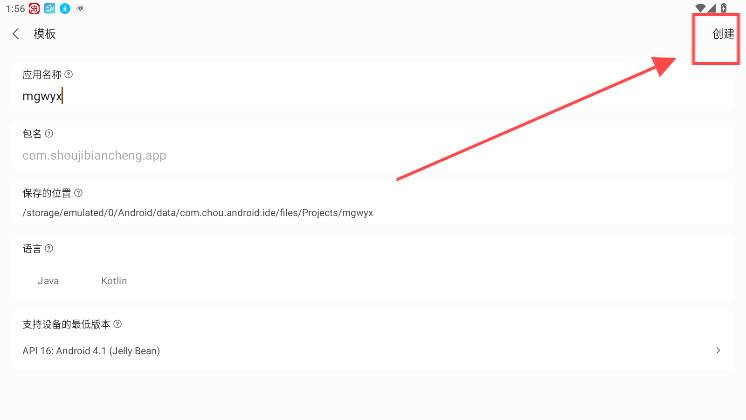 6、最后在点击创建,就能在线编写程序代码,开发手机软件了