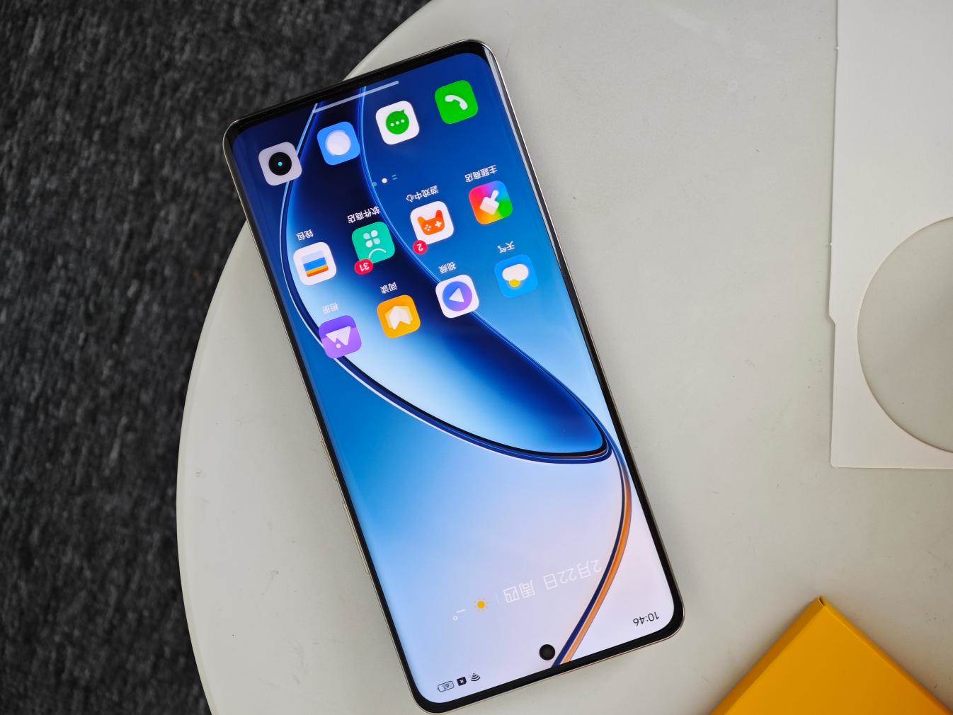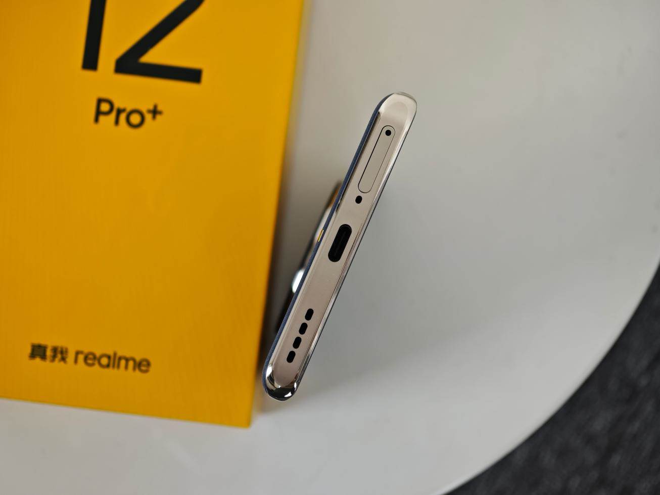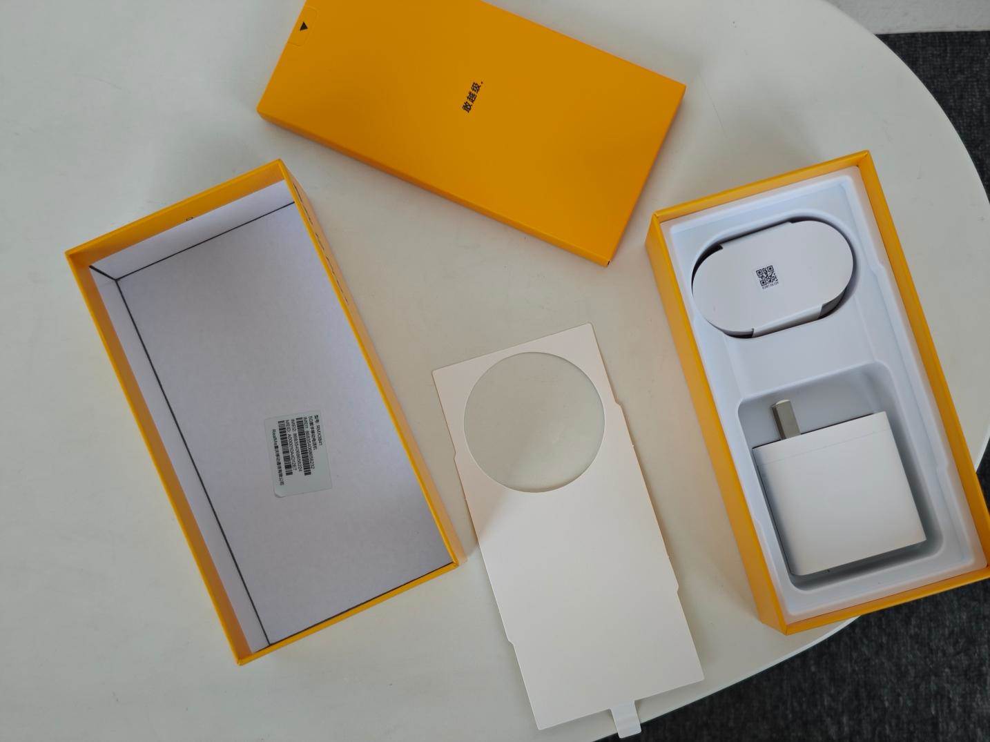 真我12 Pro+的外包装盒主体配色是白色+黄色,设计感还是不错的,正面大大的产品型号也比较明显,真我12 Pro+。