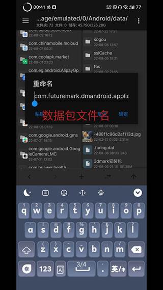 2、把数据包解压到路径/storage/emulated/0/Android/data/里面然后重命名把数据包为com.futuremark.dmandroid.application只下了测试经常用的Wild Life,