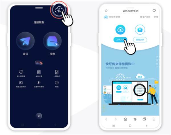 1、点击快牙传输的图标,点击“上传”