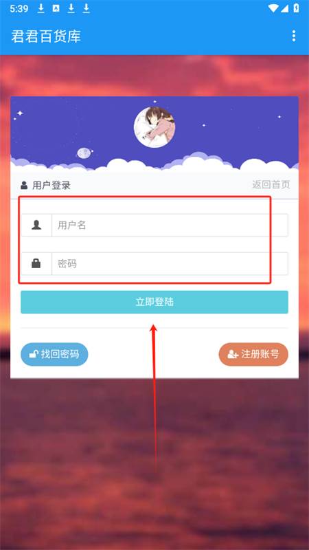 4、注册成功后回到登录页面,输入用户名和密码,点击立即登陆即可
