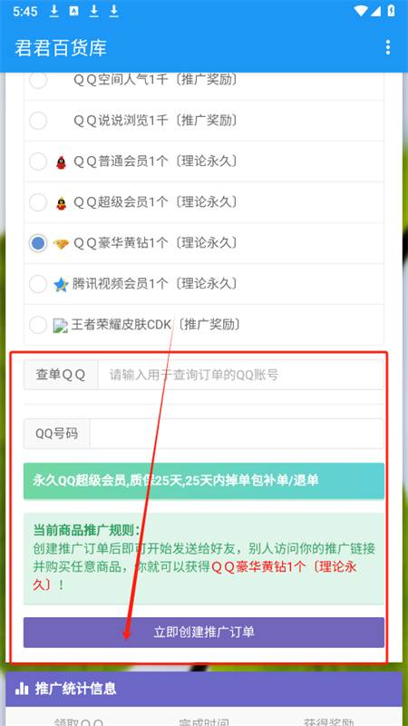 6、还可以直接进入推广奖励页面,创建自己的推广订单