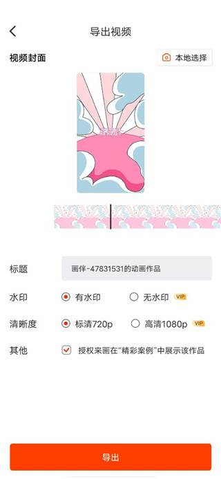 5、然后可以自己选择视频封面、标题等设置,完成后点击下方“导出”按钮;
