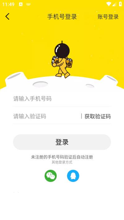 2、输入手机号和验证码。或者使用微信和QQ登录。