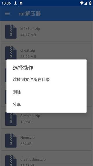 3、在文件管理页面,找到存储的rar/zip文件,长按文件;