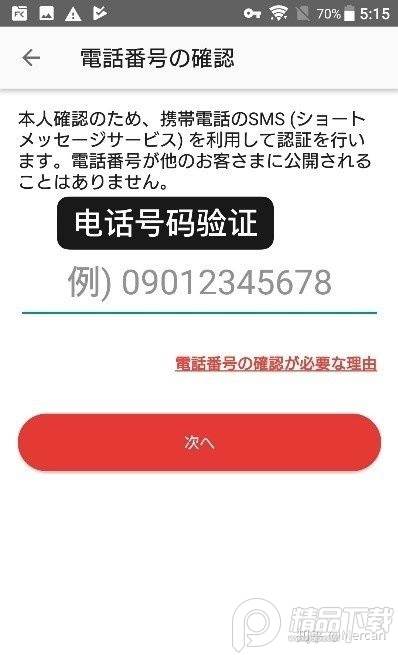 然后填入手机号码(仅090/080/070开头可验证)