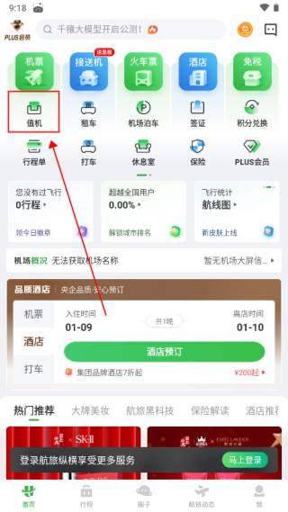 1、进入航旅纵横app,找到“值机”