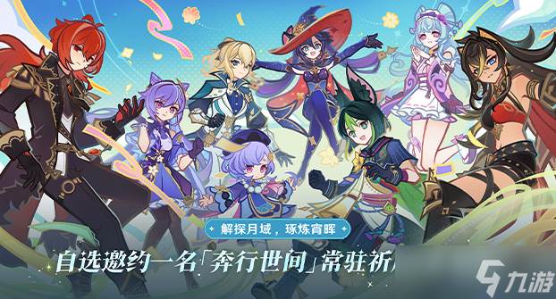 1、参与周年庆自选邀约「奔行世间」常驻祈愿获取五星角色,且能额外获得所选角色等级突破材料。