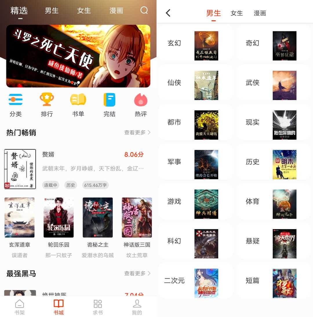 书城里有男女生、排行、书单、完结、热评等专栏,小说资源非常丰富,还支持阅读各种文学著作,几乎覆盖全网热门。