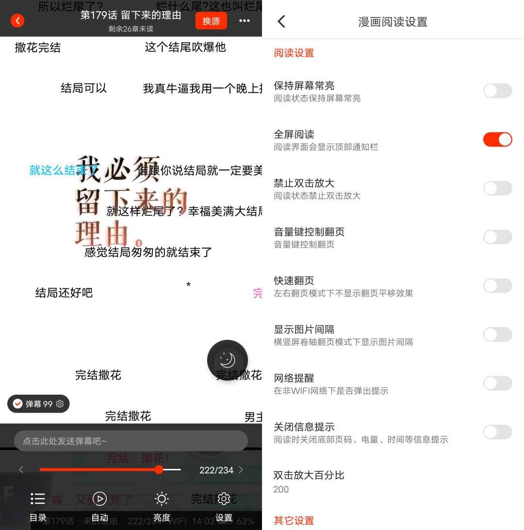 同样漫画阅读也是一样的简洁,无任何广告,还可以观看书友们的吐槽评论弹幕,自定义阅读设置。