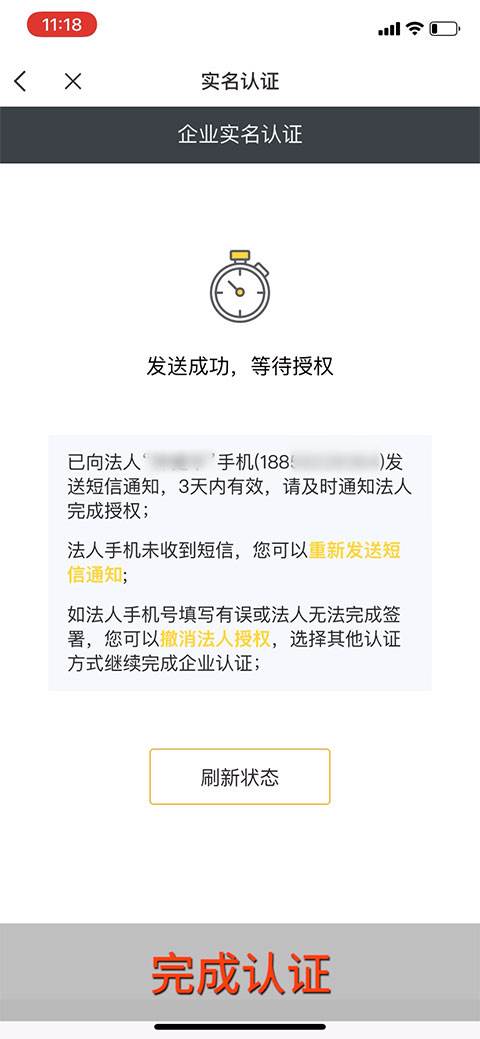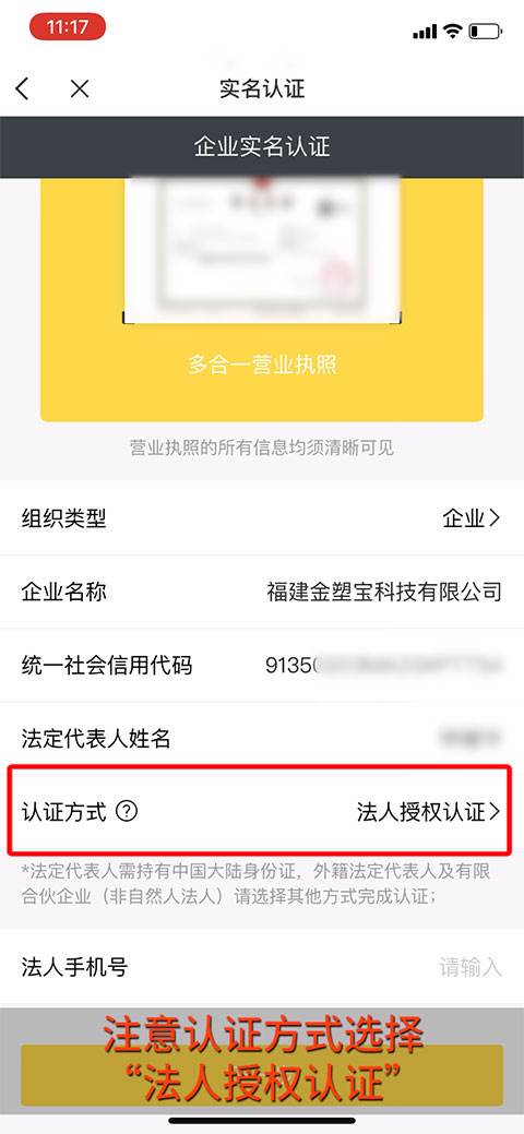 11、注意认证方式选择“法人授权认证”。