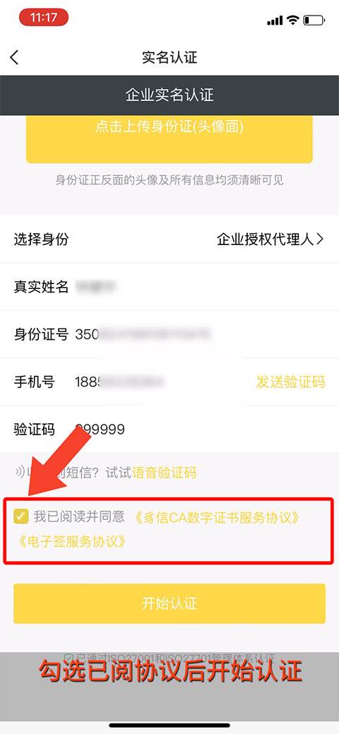 8、勾选已阅勾选已阅协议后开始认证。