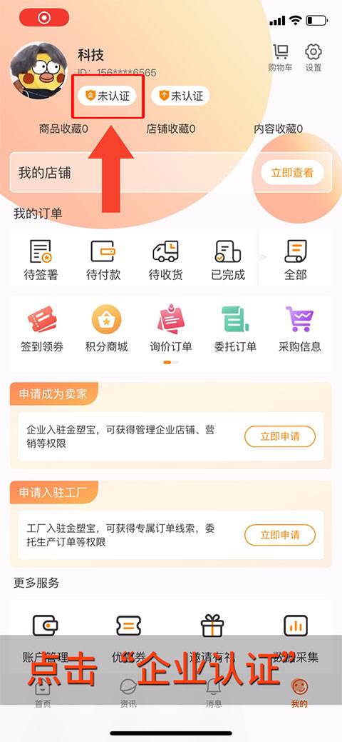 2、点击“企业认证”。