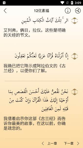 3、支持多种语言,让不同国家的用户可以用自己的母语阅读和理解《古兰经》。