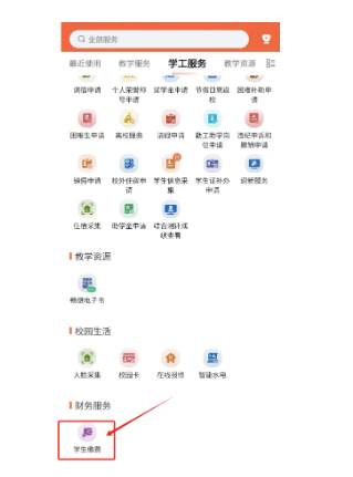 下拉找到学生缴费,点击进入。