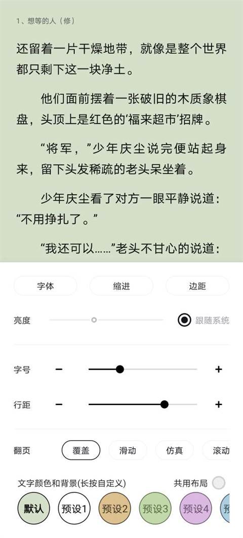 护眼模式:字体、亮度、仿真、滚屏、背景统统可以设置,更贴心!