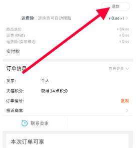 4、在随后出现的页面里,点击箭头所指的退款;