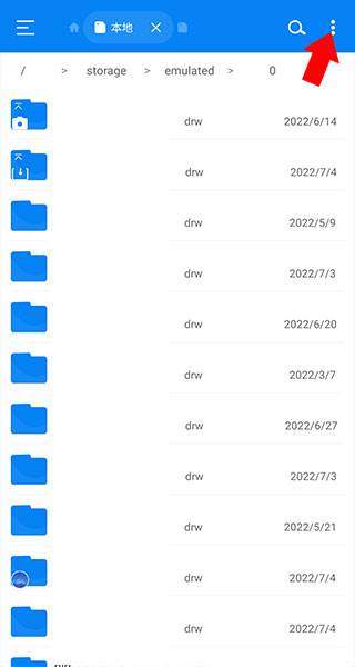 2、我们点击后来到下方界面,可以看到我们手机中所有的文件夹(这里对文件夹名称进行了涂抹),如果需要对其进行存储空间分析可以点击右上角的三个竖排点号按钮