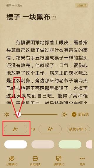 6、点击底部“设置”,还支持设置护眼模式、自动阅读、横屏模式、字体等。