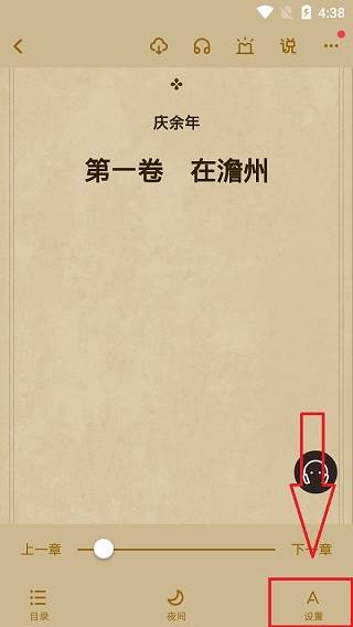 1、打开小说,点击下方的设置