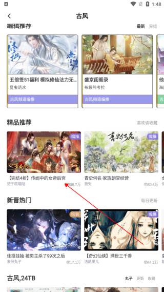 2、以榜单为例,找到心仪的小说后点击进入