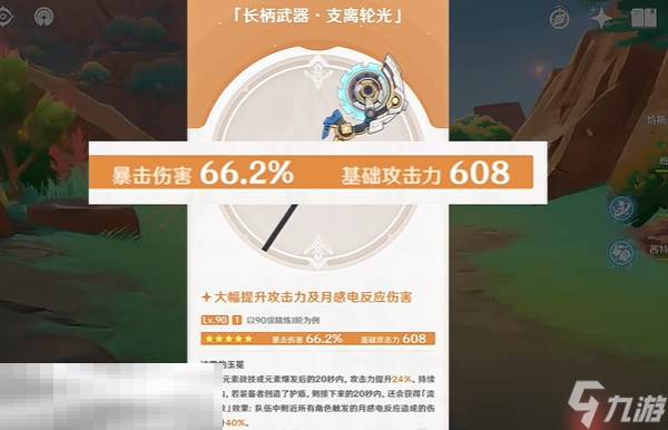 原神中的支离轮光是一款偏向辅助的五星长柄武器,精炼1阶满级时拥有608点基础攻击力和66.2%的暴击伤害加成,整体面板与护摩之杖处于同一水平线。