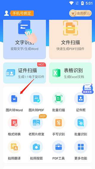 1、下载安装可以看到它有很多的功能,比如文字识别、文件扫描、图片转换、老照片修复等等;