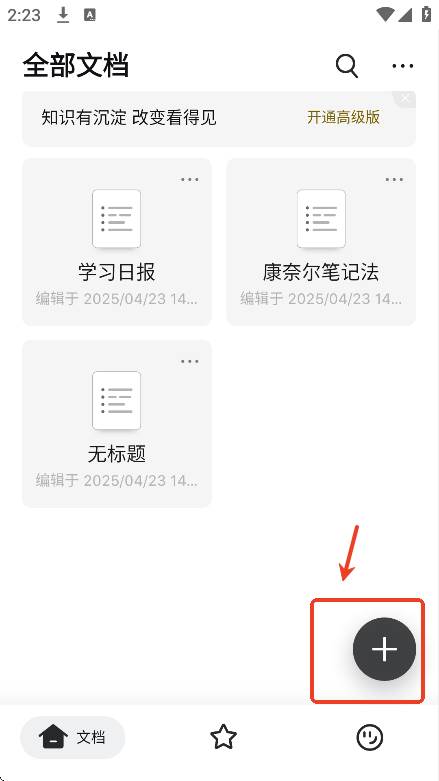 登录后,用户可以直接点击主页加号按钮新建文本笔记