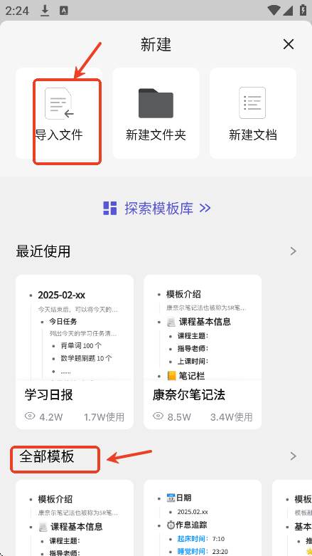 用户们可以导入本地文件,也可以使用软件内提供的模版资源