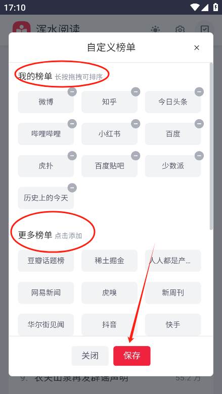 2、这里可以拖动榜单排序,也可以点击添加新的榜单
