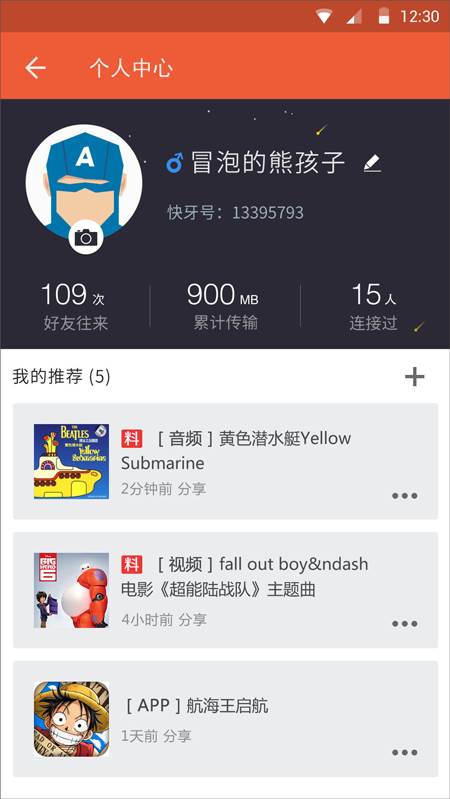 一个安全又贴心的小规则——可以传文件的“传输好友”,必须是曾使用快牙面对面连接过的朋友。