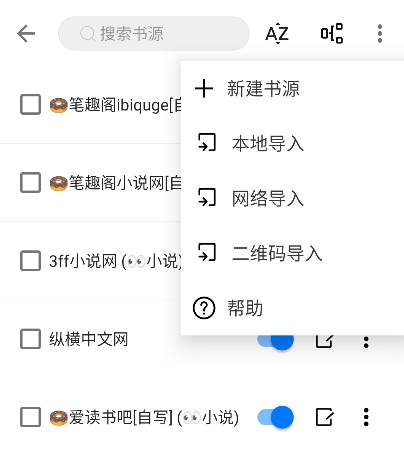 打开APP 点击右下角的 我的 - 书源管理 ,这时候再点击右上角的 ┇ - 二维码导入- 然后手机扫描下方二维码即可即可。