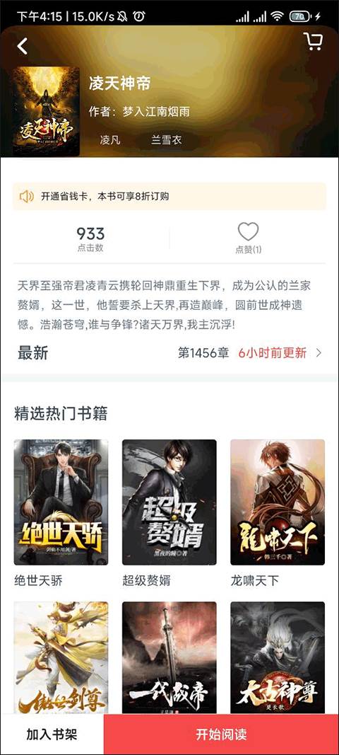 2、进入书籍页面后点击开始阅读,进入到我们的阅读页面。