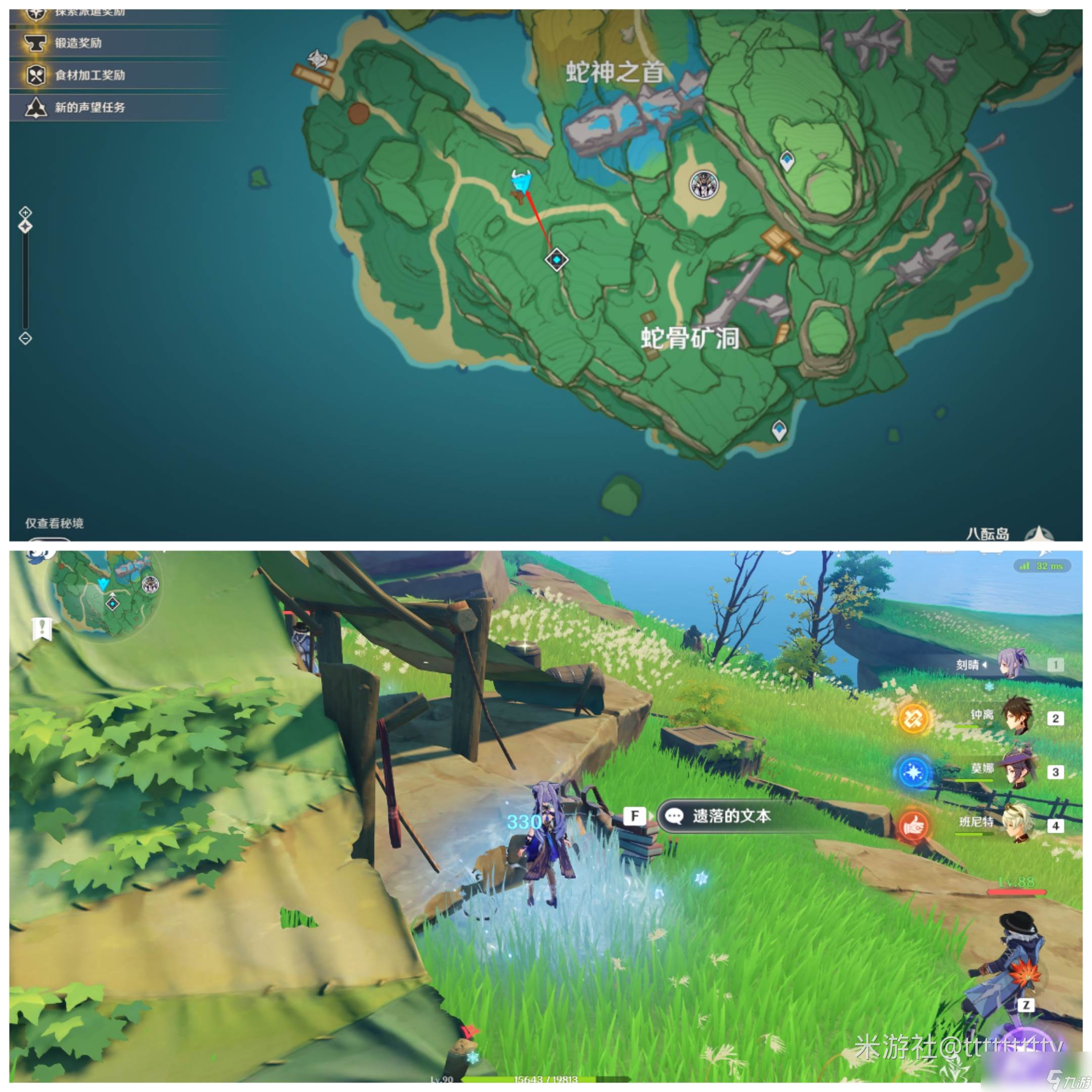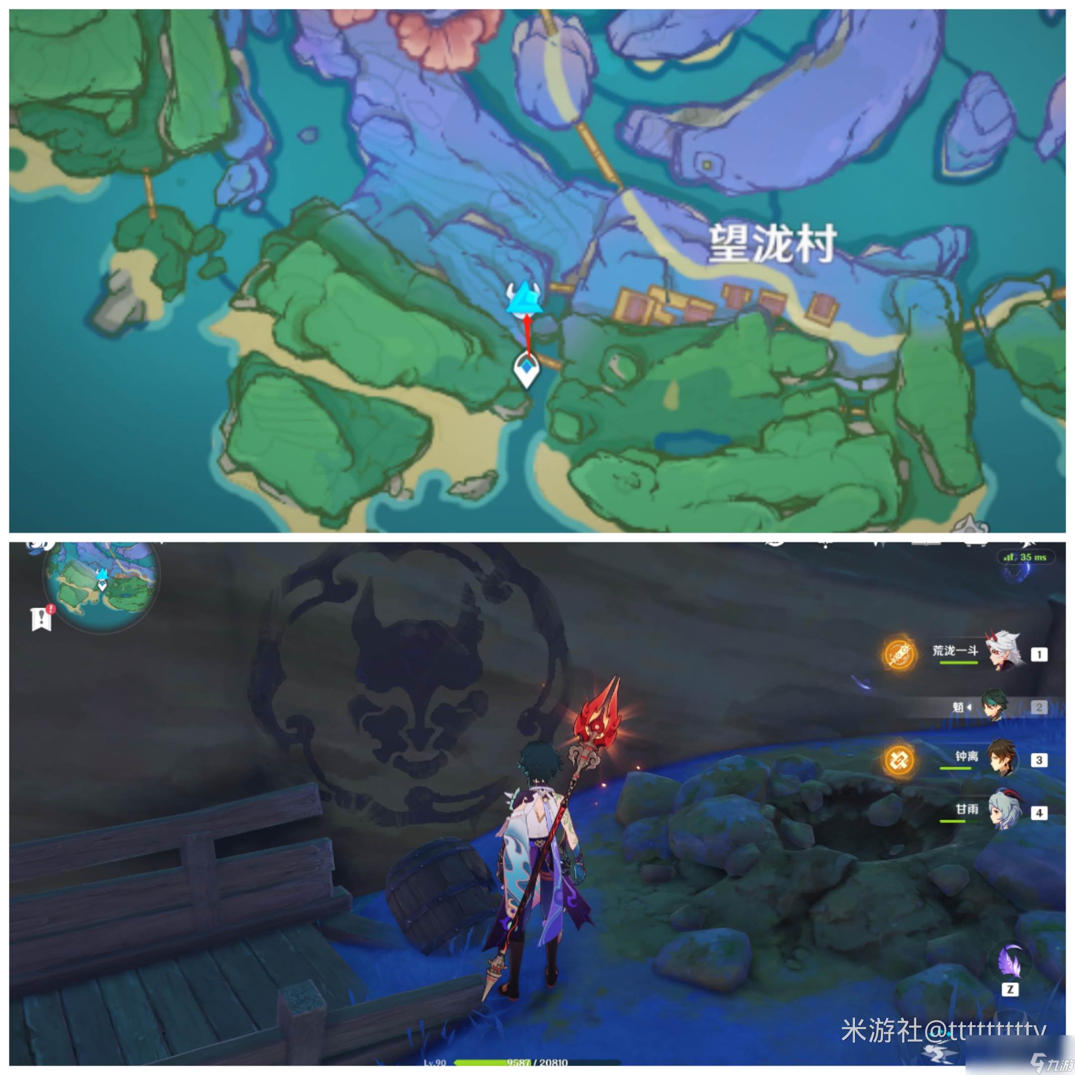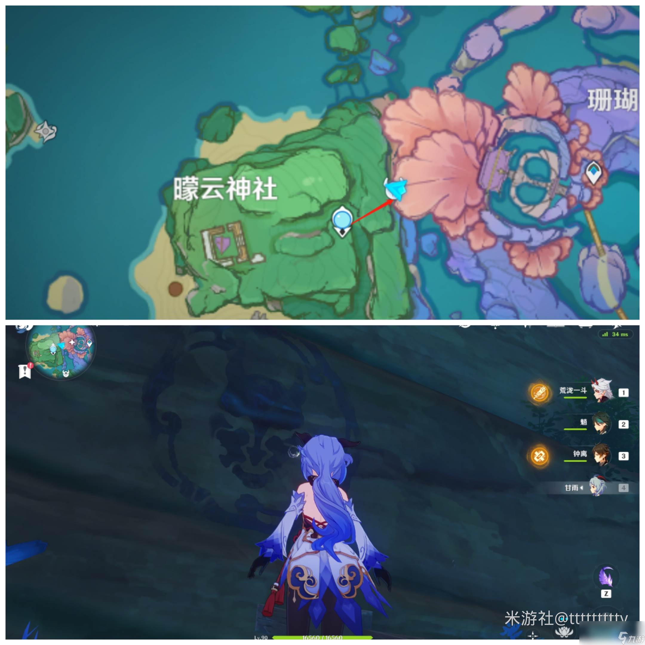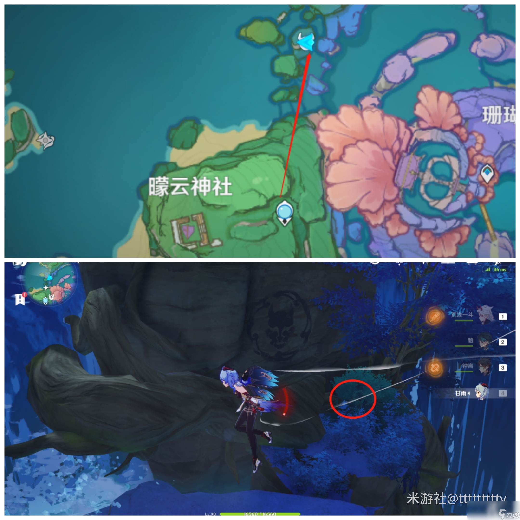 3.曚云神社上方,两片瀑布中间的石壁处,需在下图圈注区域才能挖掘。