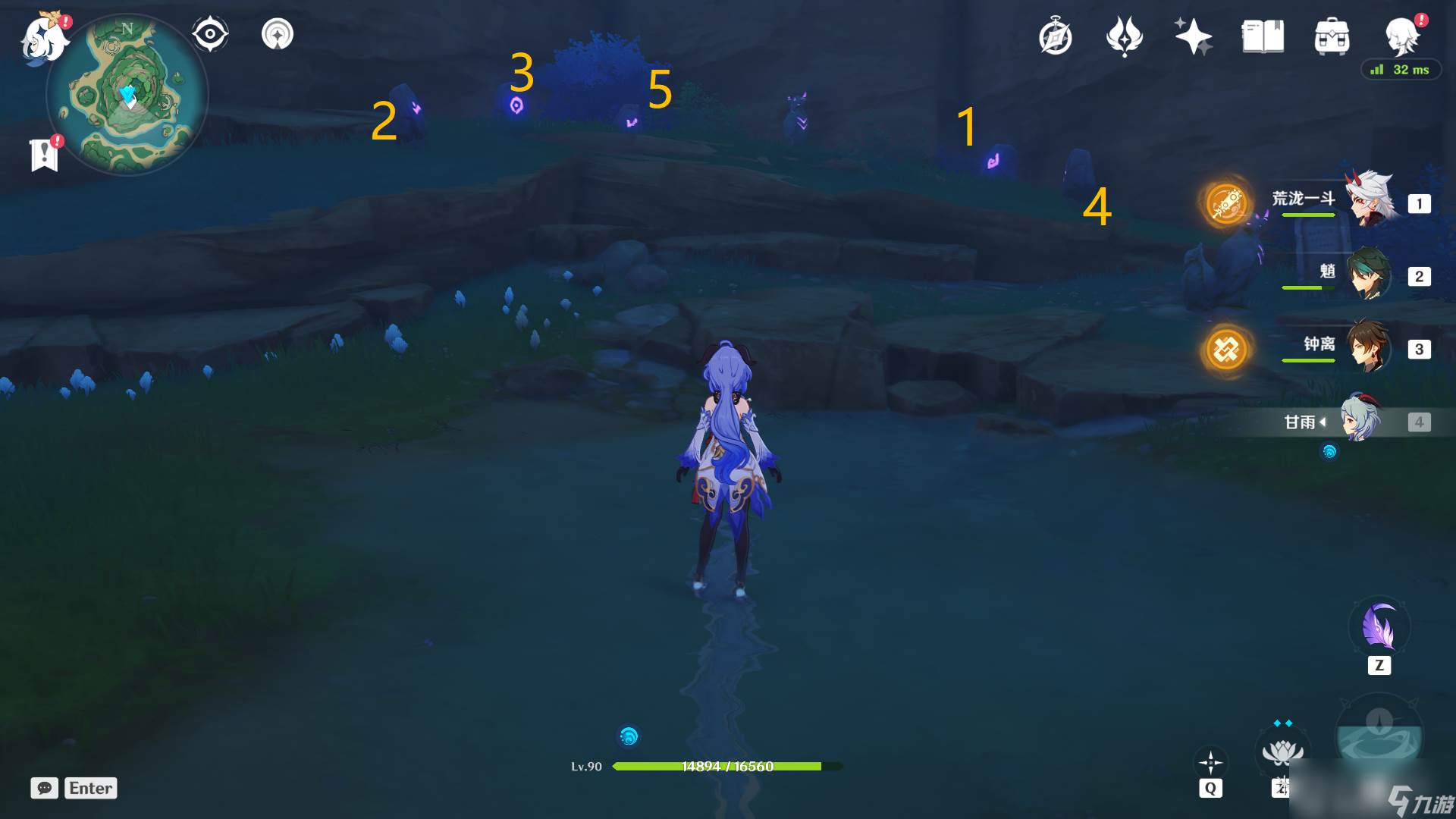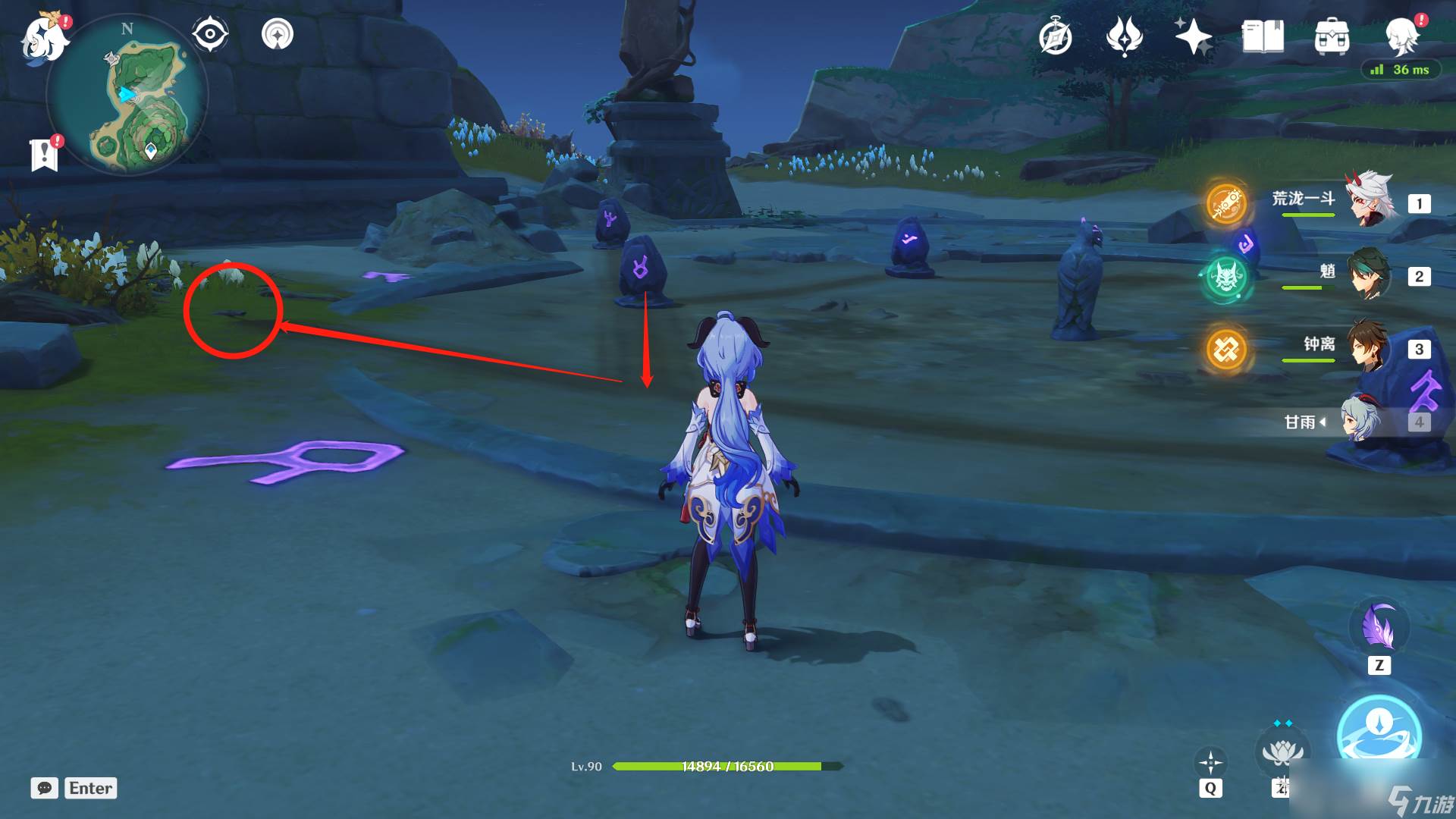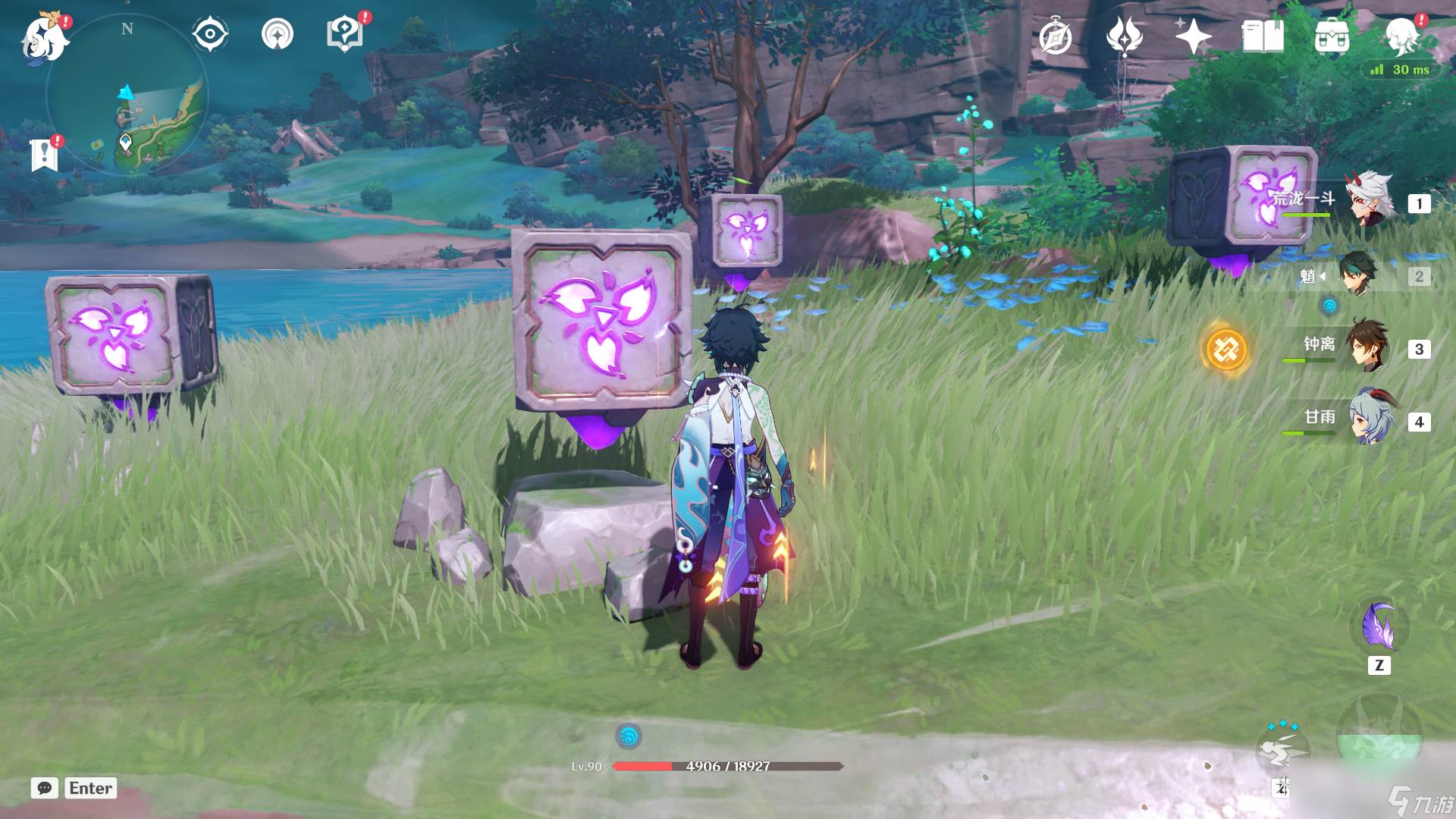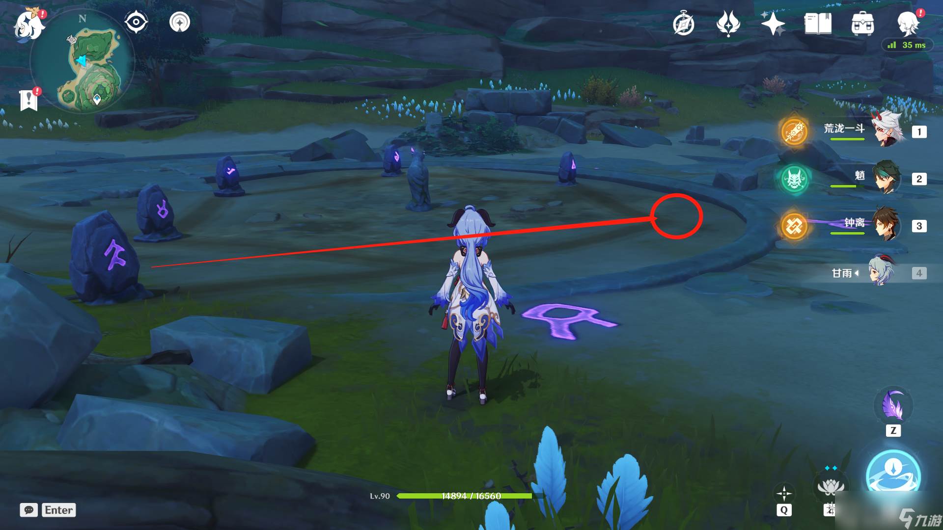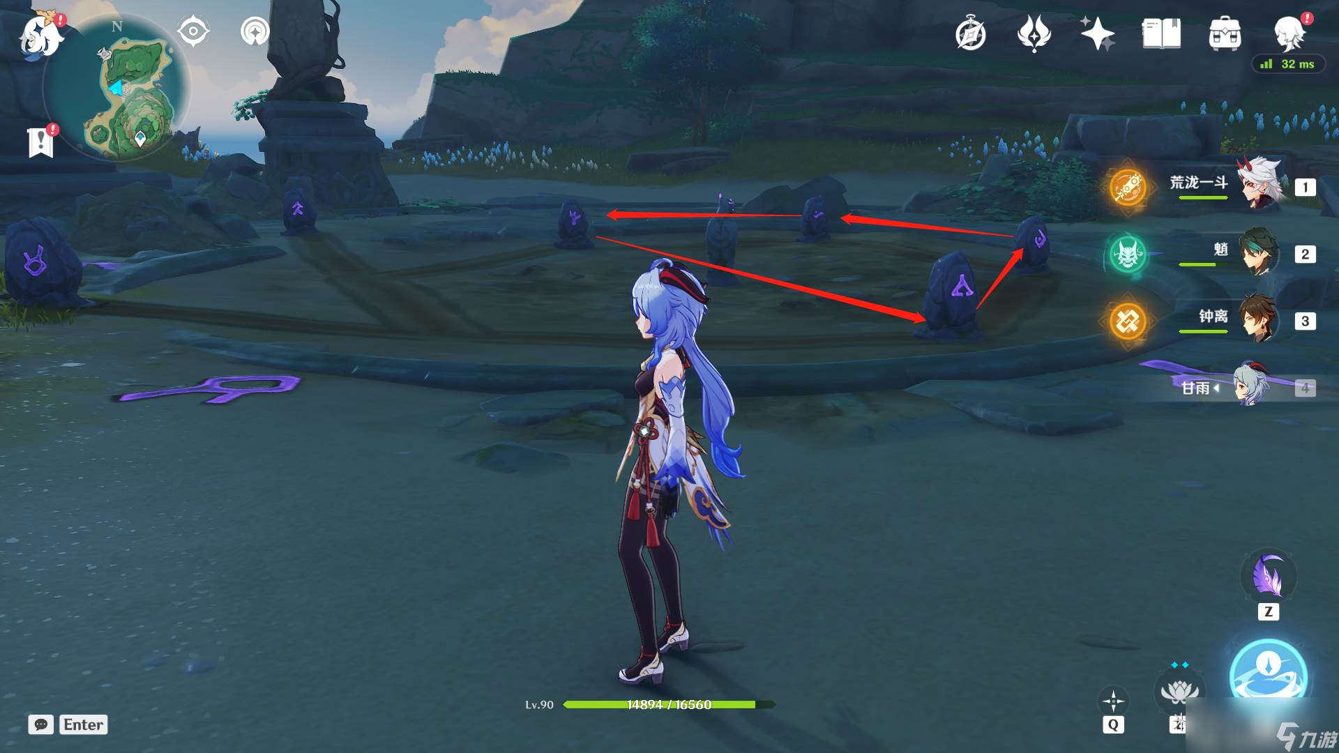 来到上图中的位置,拾取雷种子后按下图所示顺序靠近点亮小石柱,即可获得一个普通宝箱。