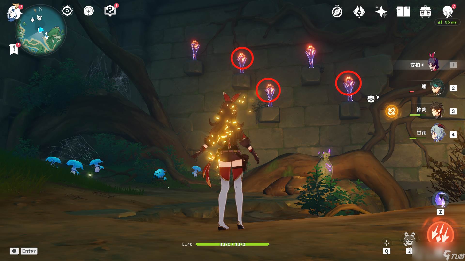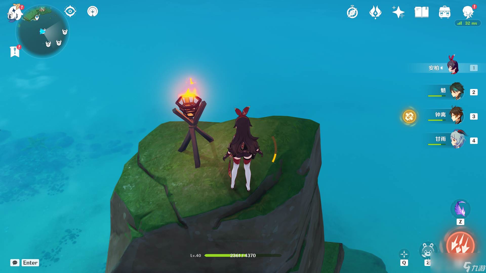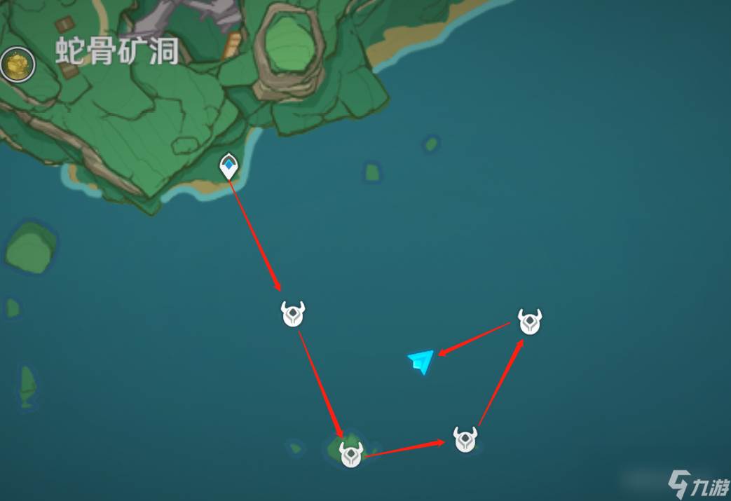 点燃图中标记的四个小岛上的火把,便会在中央出现一个精致的宝箱。好兄弟们按图中顺序,点燃后拾取雷种子就能直接飞往下一个。