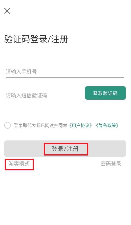 2、进入之后输入信息点击登录/注册,不想注册的话就点击游客模式;