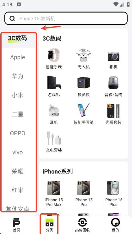 登录后,用户们可以在分类页面挑选自己喜欢的二手手机和3C数码产品