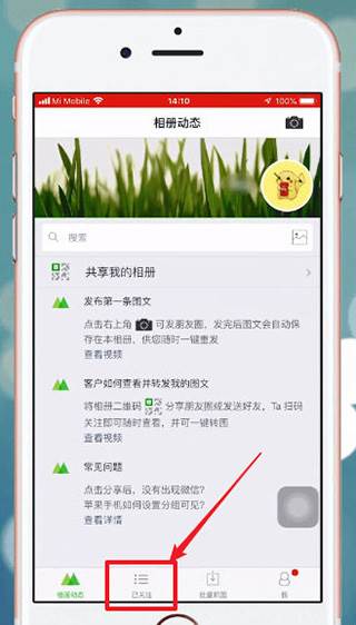 1、打开【微购相册】,点击【已关注】