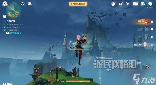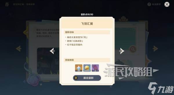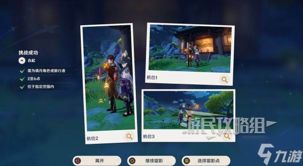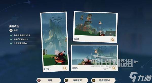 切换出一名风元素角色,与留影点互动,根据喜好进行调整,然后可以在界面左侧查看是否符合留影要求。