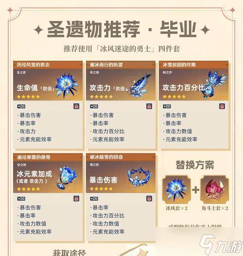 在配件选择上,需要注重攻击力和暴击率。特别是神里的冰雪秘术,可以让其暴击率得到进一步提升。