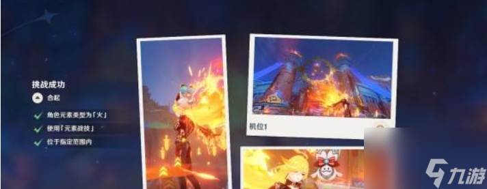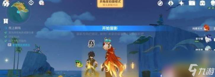 拍摄流程:携带一名火元素角色,与留影点互动,根据个人喜好调整镜头;