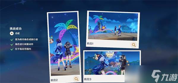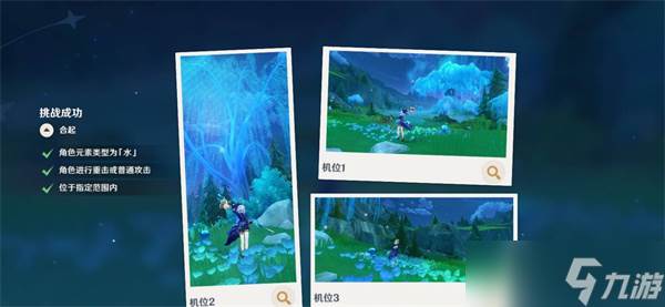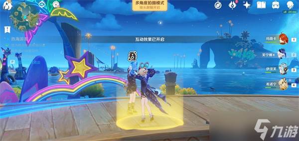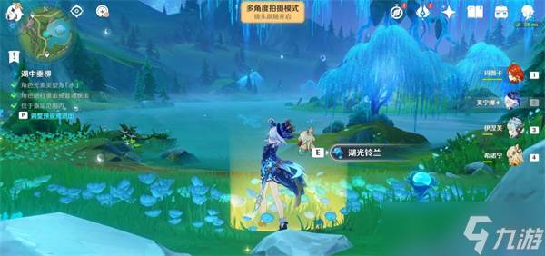 3、切换出一名水元素角色,与留影点互动,根据喜好进行调整,可以在界面左侧查看是否符合留影要求。