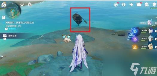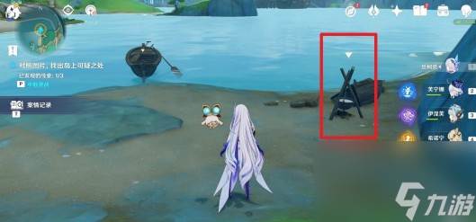 到达目标位置触发对话,获得【综像勘录仪】,在背包小道具中装备上再与夜兰对话,开始调查。