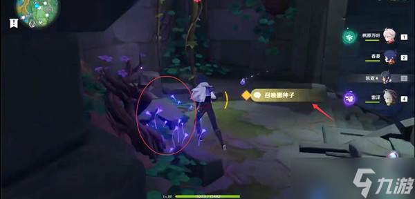4、进入水罩子下面的洞穴,召唤雷种子打开雷屏障。